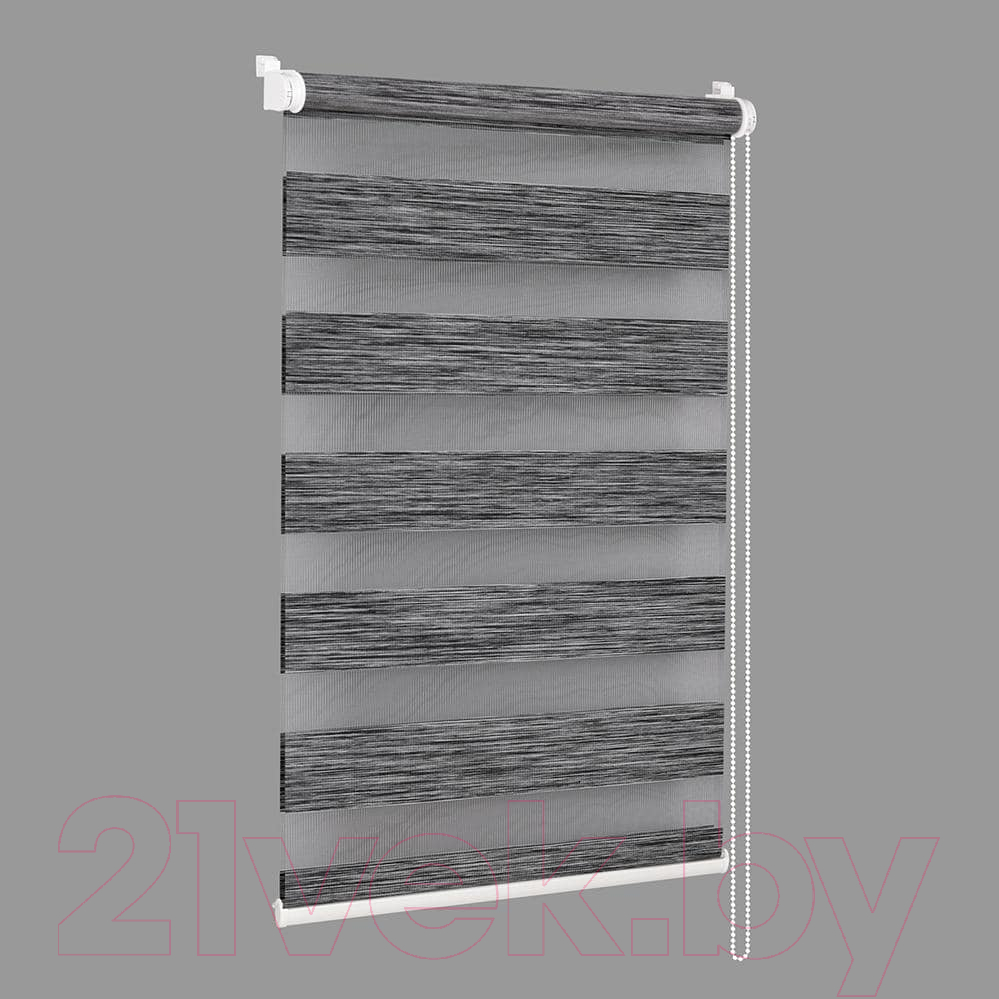 Рулонная штора «День-ночь» состоит из ткани, с чередующимися полосами из прозрачного и непрозрачного материала, расположенной в два слоя. Уникальность двойной рулонной шторы заключается в её универсальности. Она имеет и привлекательный внешний вид, и легка в управлении, даёт возможность контролировать интенсивность солнечного света, непосредственно на самом изделии.