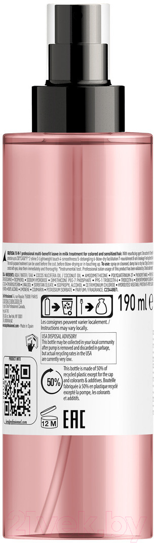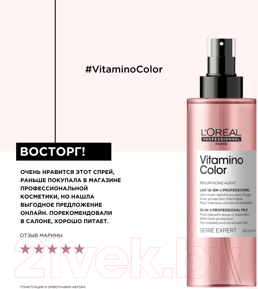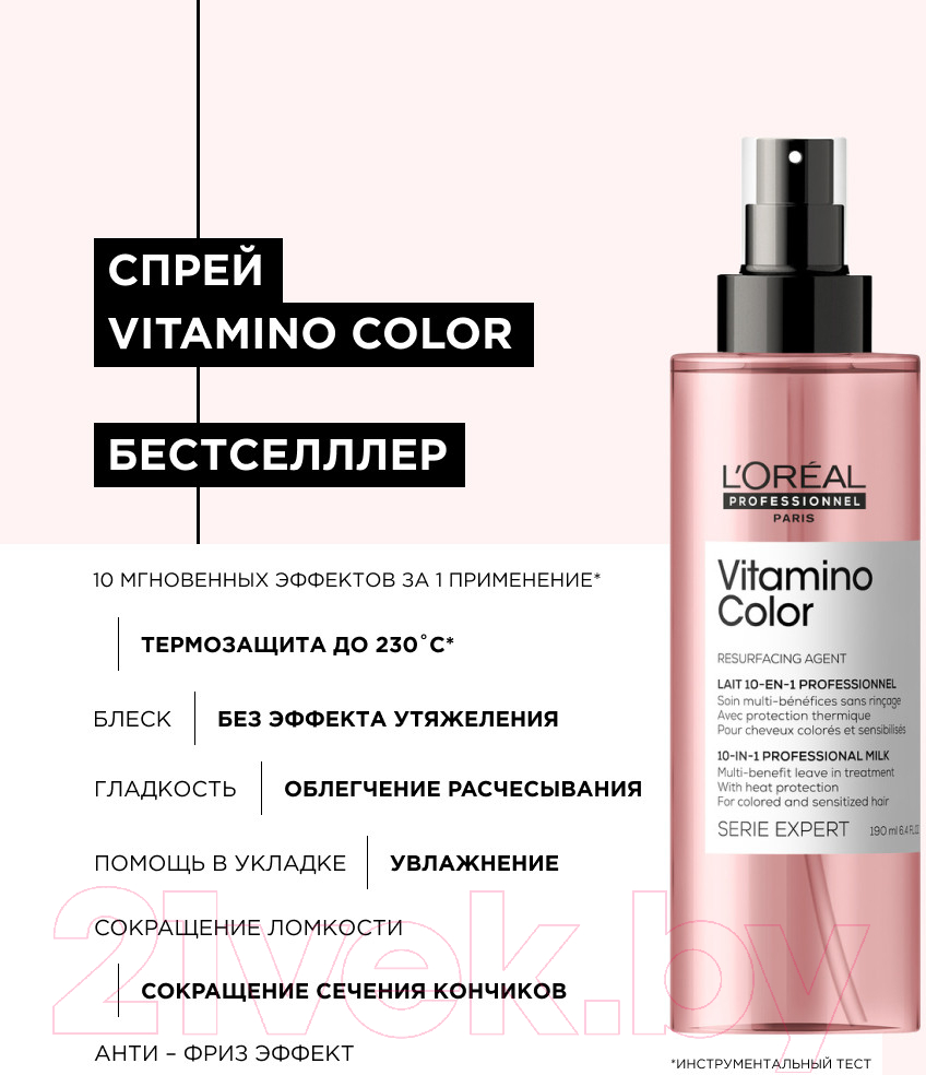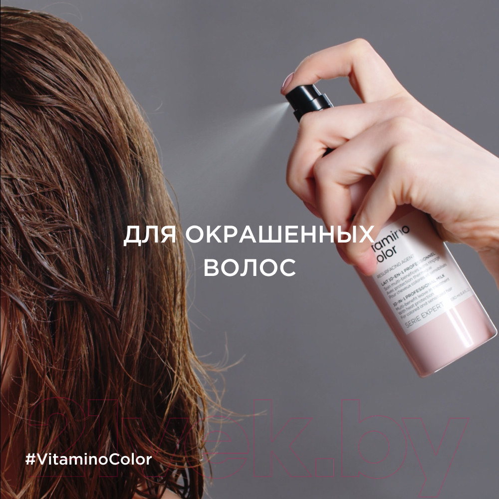 Продлить эффект салонного окрашивания возможно с помощью правильно подобранного домашнего ухода. Спрей 10-в-1 заменит несколько средств для ухода и укладки и обеспечит 10 мгновенных эффектов. Термозащита до 230°С, блеск, снижение электризации волос, защита чувствительных волос после окрашивания — все в одном флаконе.